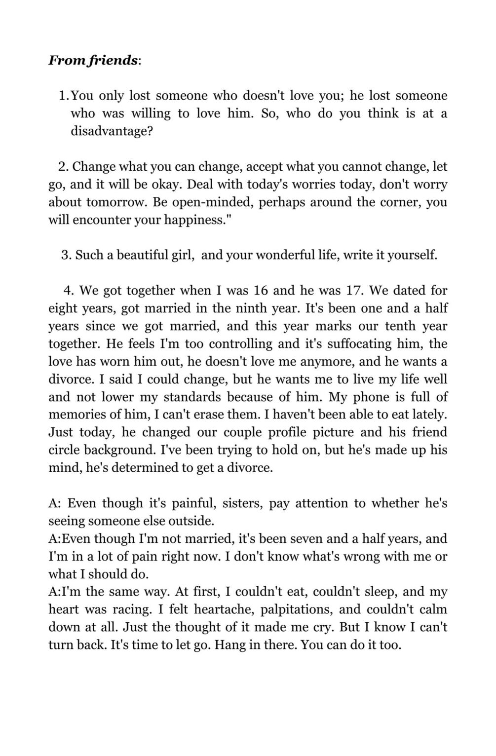 Whether you're in need of solace, seeking understanding, or simply looking to immerse yourself in authentic human experiences, this book offers a sanctuary. Each story highlights the complexities and resilience of love, providing comfort, validation, and insights into the highs and lows that define our most intimate relationships.