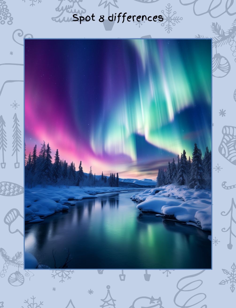 Welcome to "Spot the Difference - Winter Edition", where 40 enchanting puzzles await to transport you into the heart of winter's magic. Each carefully crafted puzzle brings to life the serene beauty and festive spirit of the season, offering a unique blend of challenge and delight for puzzle enthusiasts of all ages.